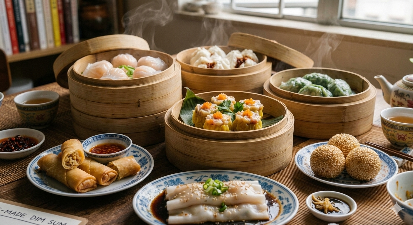 이 다섯 가지 메뉴만 준비해도 작은 딤섬 코스가 완성됩니다. 찜 요리와 튀김 요리를 적절히 섞어 준비하면 맛의 균형도 훨씬 좋아집니다.